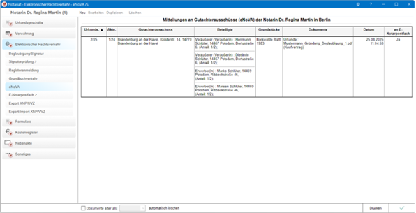 Der Elektronische Rechtsverkehr wurde für SQL-basierte Notariate um den Versand eNoVa erweitert.