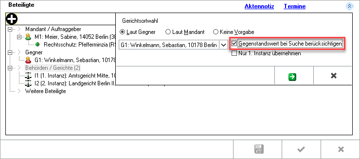 Zum 01.01.2026 tritt die gesetzliche Anhebung des sachlichen Zuständigkeitsstreitwerts nach § 23 Nr. 1 GVG für die sachliche Zuständigkeit der Amtsgerichte in Zivilverfahren von 5.000 € auf 10.000 € in Kraft. RA-MICRO berücksichtigt diese Änderung automatisch in den Funktionen „Akte anlegen“ und „Akte ändern“, wenn im Bereich Behörden/Gerichte die Gerichtsortsuche mit der Option „Gegenstandswert bei Suche berücksichtigen“ genutzt wird.