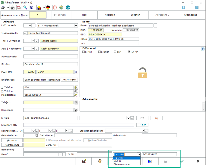 Im Adressfenster steht ab sofort ein neues Feld zur Eingabe der Steuernummer zur Verfügung.