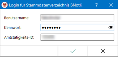 Mit Klick auf “Exportieren” startet der Export der gewählten Einträge, dazu erfolgt zunächst die Anmeldung im Stammdatenverzeichnis der BNotK über die Zugangsdaten des/der Notars/Notarin oder des Mitarbeitenden: