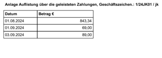 Wird diese Option gewählt, werden automatisiert durch das Programm entsprechende Aufstellungen aus dem Forderungskonto erstellt und den Anträgen angefügt.